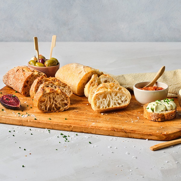Onze Ciabatta wordt bereid met onze eigen desemcultuur, volledig zonder gist. Dankzij een lange rijstijd ontwikkelt het brood een rijke smaak en een open kruim, met een knapperige